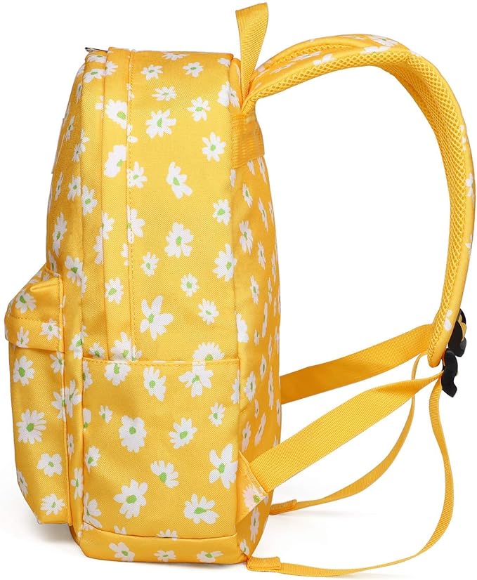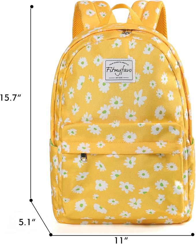 - ️Capacity of Girls Backpack: This daisy school backpack fits up to a 14-inch laptop and A4 binders. The double outside pockets for storing bottles and umbrella. Inside mesh and zipper pockets convenient for you to organize your phone, wallet, cards, exam supplies, and other daily stuff.